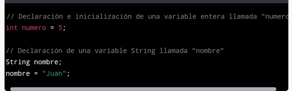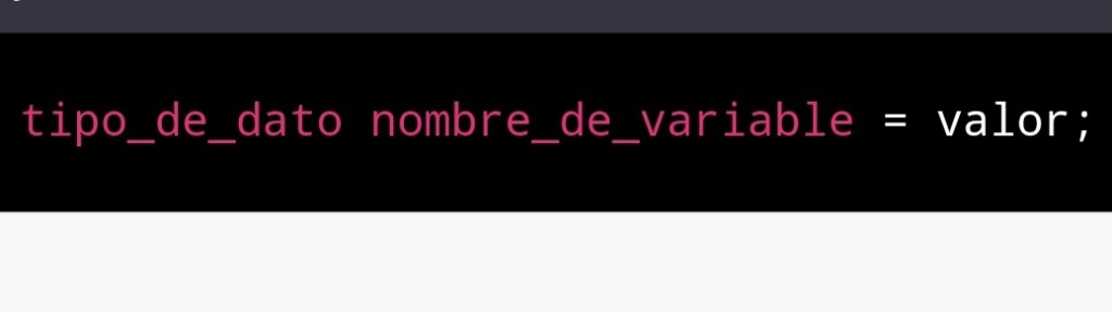 Donde «tipo_de_dato» es el tipo de dato de la variable, «nombre_de_variable» es el nombre de la variable y «valor» es el valor inicial de la variable.